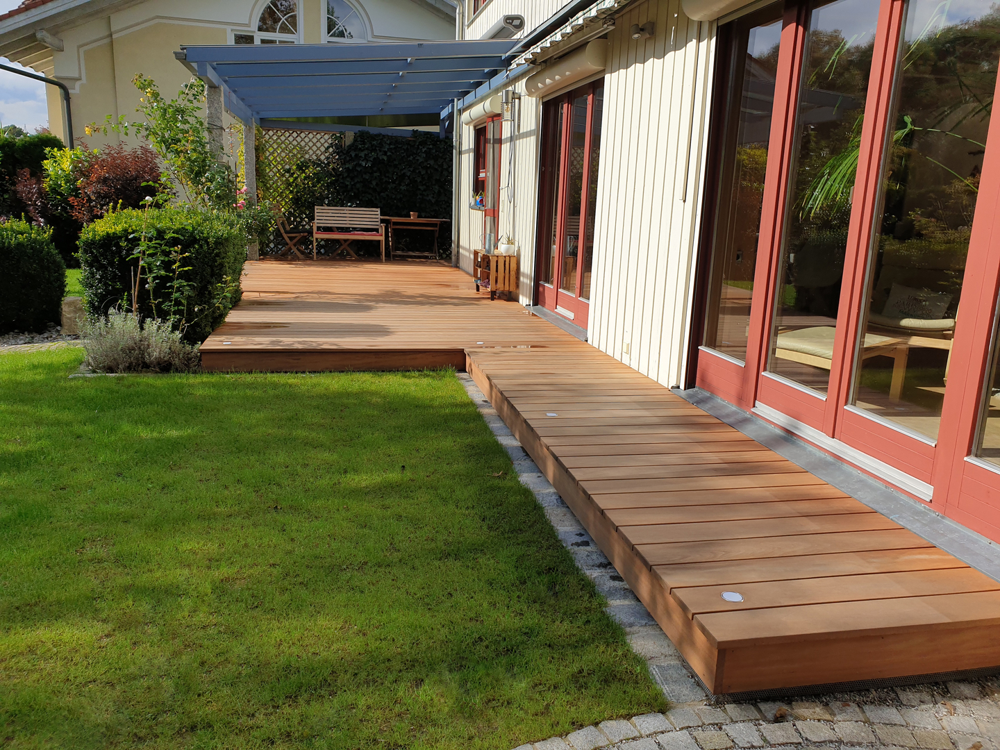 Ob zur Erholung, als Treffpunkt mit Freunden oder als sicherer Freisitz – Terrassen und Balkone erweitern den Wohnraum ins Freie. Zäune aus Holz schaffen Privatsphäre und runden das Grundstück optisch ab.