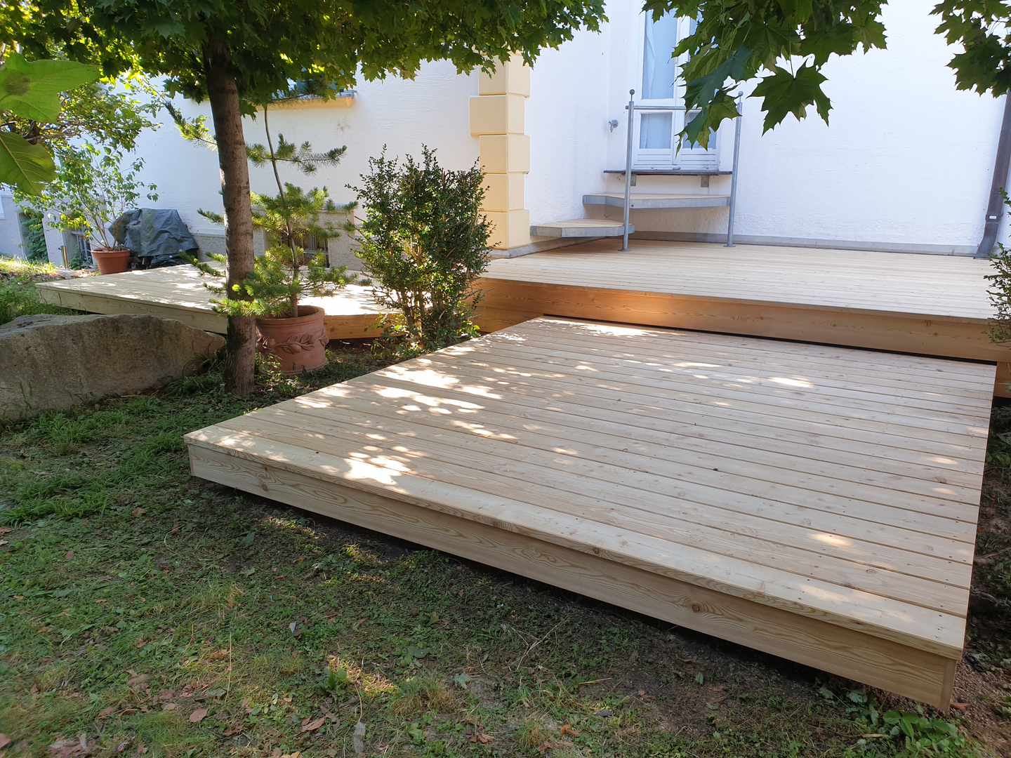 Ob zur Erholung, als Treffpunkt mit Freunden oder als sicherer Freisitz – Terrassen und Balkone erweitern den Wohnraum ins Freie. Zäune aus Holz schaffen Privatsphäre und runden das Grundstück optisch ab.
